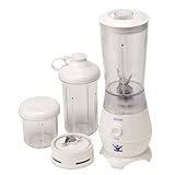 For ultimate convenience in a space-saving design, this two-in-one 240-watt appliance converts from a mincer to a blender in seconds. As a mincer, the unit provides a shatter-proof container and a sharp blade for quickly mincing herbs for homemade soup, stews, and salads or even grinding nuts or coffee beans. For safety, the lid must be properly locked in place for the chopper to operate. Switch out the mincing attachment for the 15-ounce blending container, and the appliance can be used for mixing up a batch of fresh salsa or blending a protein shake. The removable filler cap doubles as a measuring cup for adding ingredients while blending, and a 17-ounce travel cup with a sporty lid comes included, making it easy to sip on something healthy when out and about. Other highlights include a twist-on lid for storing contents in the refrigerator, a safety shut-off switch, and dishwasher-safe removable parts for quick cleanup. Recipes come included. The appliance measures 4 by 4 by 12-1/2 inches as a blender, 4 by 4 by 9-1/4 inches as a mini mincer, and 4 by 4 by 11-3/4 inches as a large mincer. It carries a one-year limited warranty.