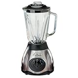 Equipped with a powerful 500-watt motor, this countertop blender works great for making everything from fruit smoothies and frozen cocktails to sauces, soups, and other creations. The appliance contains six stainless-steel blades that deliver efficient pulverizing and ice crushing, as well as a simple control dial for selecting the ideal blending speed. Choose from high and low settings, or pulse, which allows quick start/stop control. Even more, its electronically controlled "automatic" feature pulses the mixture to ensure all of the ingredients get incorporated while blending. The blender provides a 1-1/2-liter glass jar with seven ribs, generous handle, drip-free pouring spout, and a tight-fitting lid with a removable filter cap for adding ingredients during operation. Other highlights include safety locks on the jar and lid to avoid accidental activation, a thermally protected motor to prevent burnouts, and removable parts for easy clean up. With its stainless-steel base in a modern design, the sleek-looking blender measures approximately 8 by 8 by 15-1/2 inches and carries a one-year limited warranty.