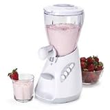 The AutoServe Smoothie Maker with convenient auto-powered dispensing allows consumers to make and serve smoothies and other thick beverages quickly and easily. By simply pressing a glass against the dispensing button, the motor runs at low speed and dispenses smoothies and other thick beverages with professional results.A powerful motor, funnel-shaped container, specially-designed blades and stir stick work together to crush ice with smooth, uniform results.Easy smoothie measuring marks on the mixing container keeps smoothie-making simple.